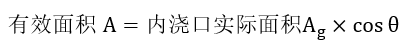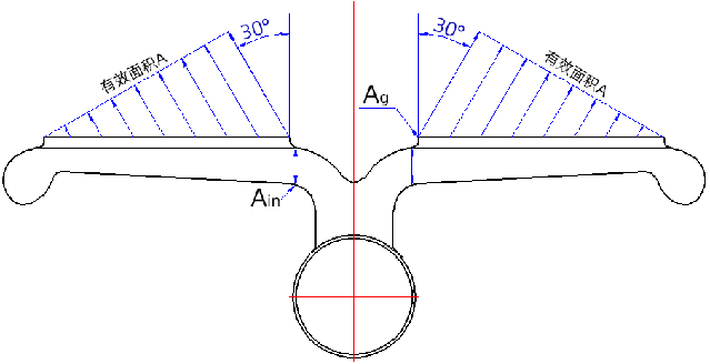In addition, in the design of the tapered runner structure, the effective area of the inner gate also needs to be considered, because the size of the jet angle also affects the effective area value of the inner gate. The jet angle has the following relationship with the effective area and actual area of the inner gate: