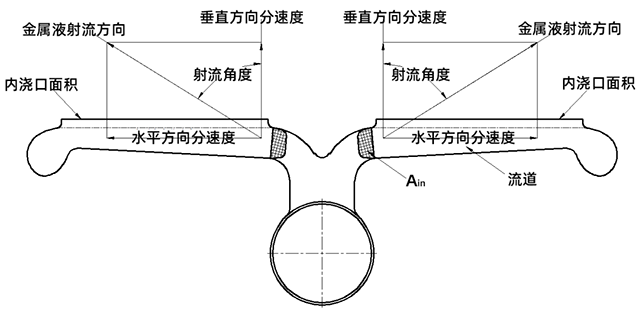 To be precise, it is the cross-sectional area at the entrance of the runner and the area of the inner gate that determine the size of the jet angle. The relationship between these three can be shown by Equation 1 and Figure 4.